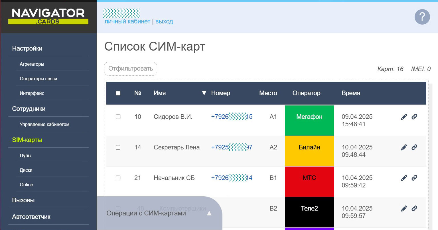 Операции с СИМ-картами