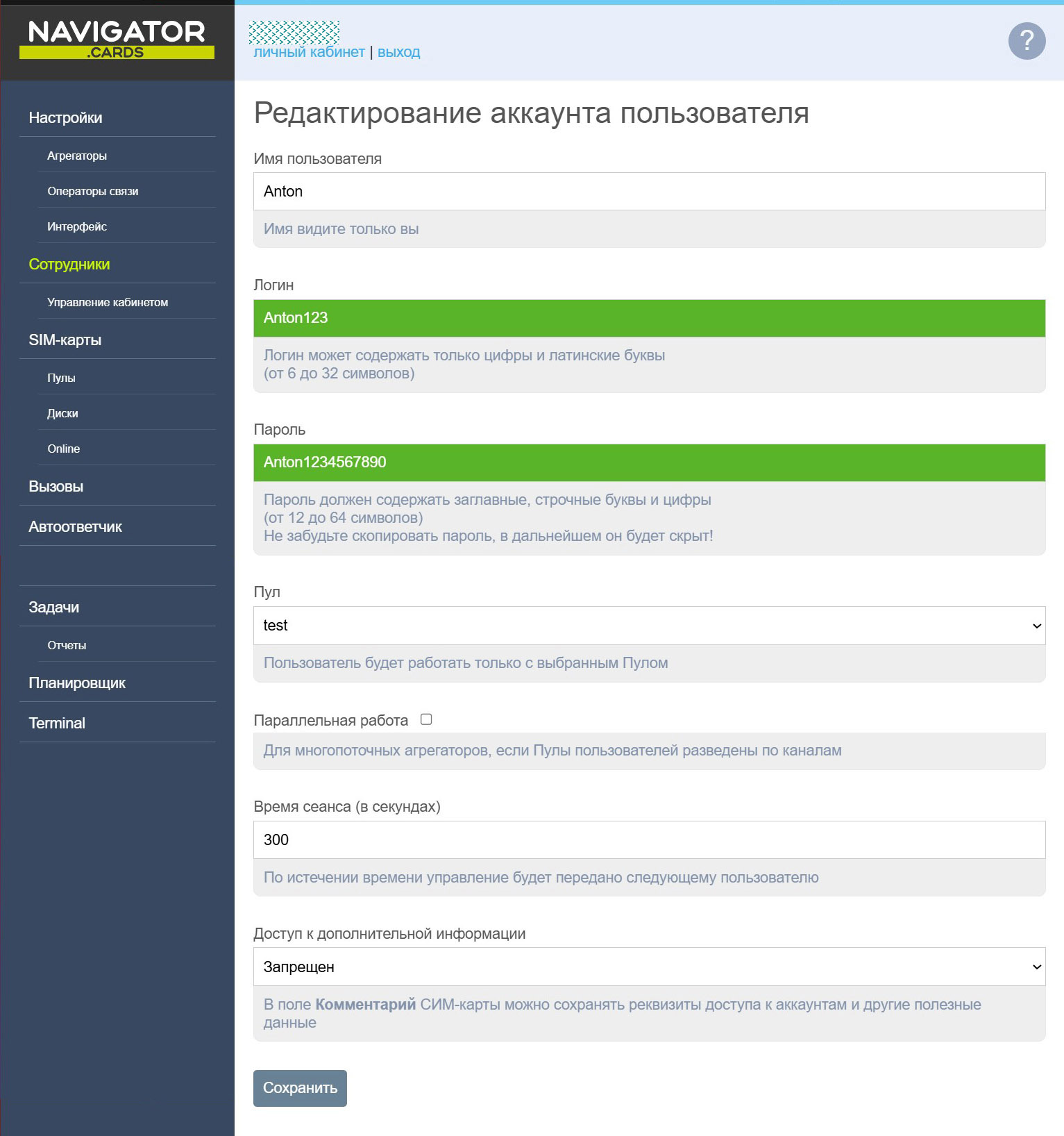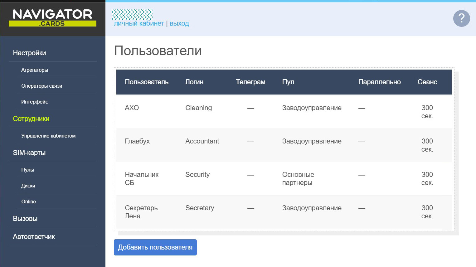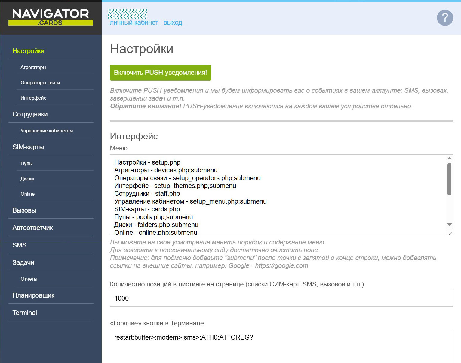 Для более сложных задач доступна расширенная версия — SR-Navigator PRO. Она включает многопользовательский доступ к SIM-картам, разграничение прав сотрудников, а также уведомления о входящих звонках и SMS через Telegram.