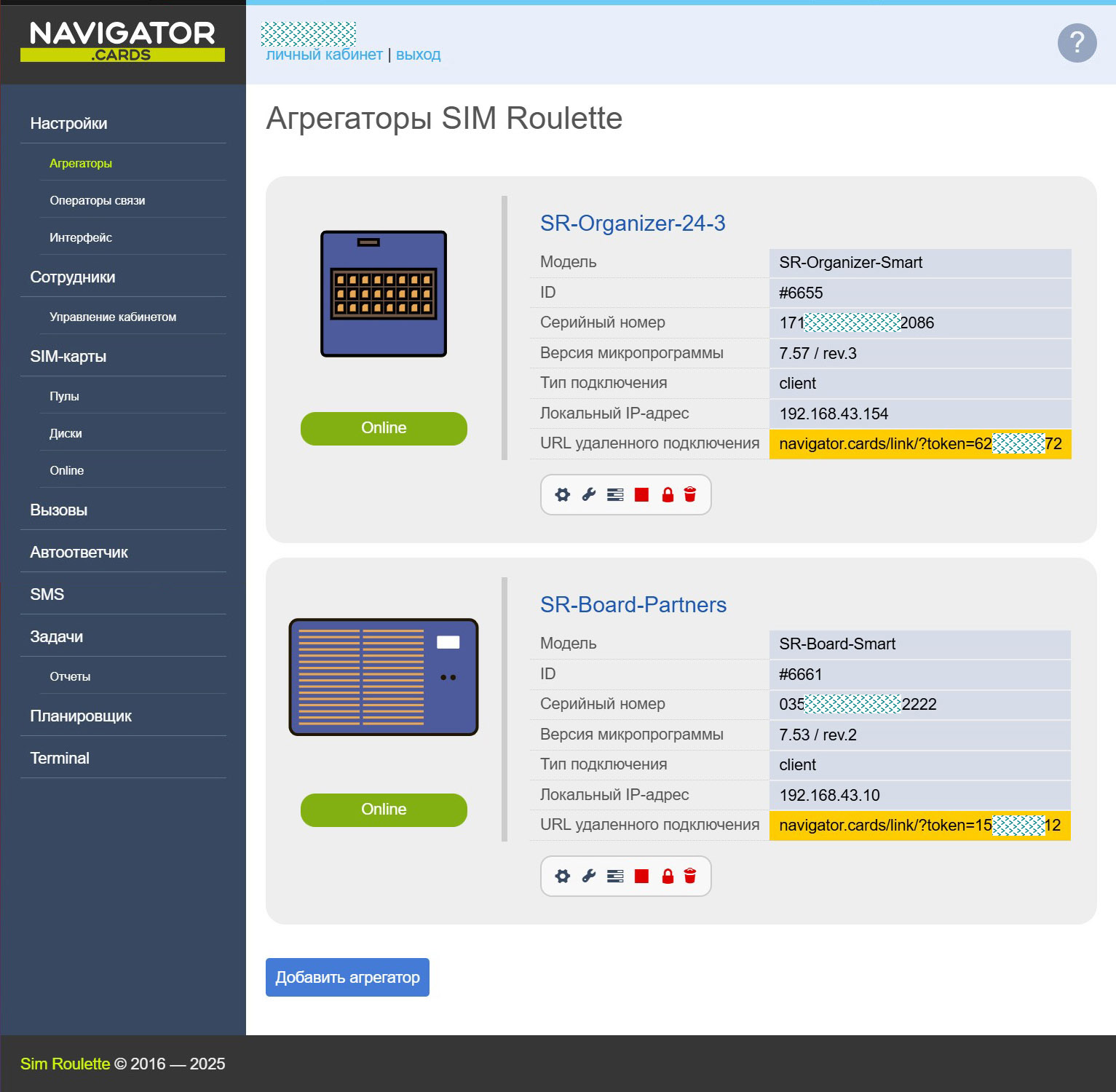 - SR-Navigator взаимодействует одновременно с неограниченным количеством агрегаторов Sim Roulette любых моделей.