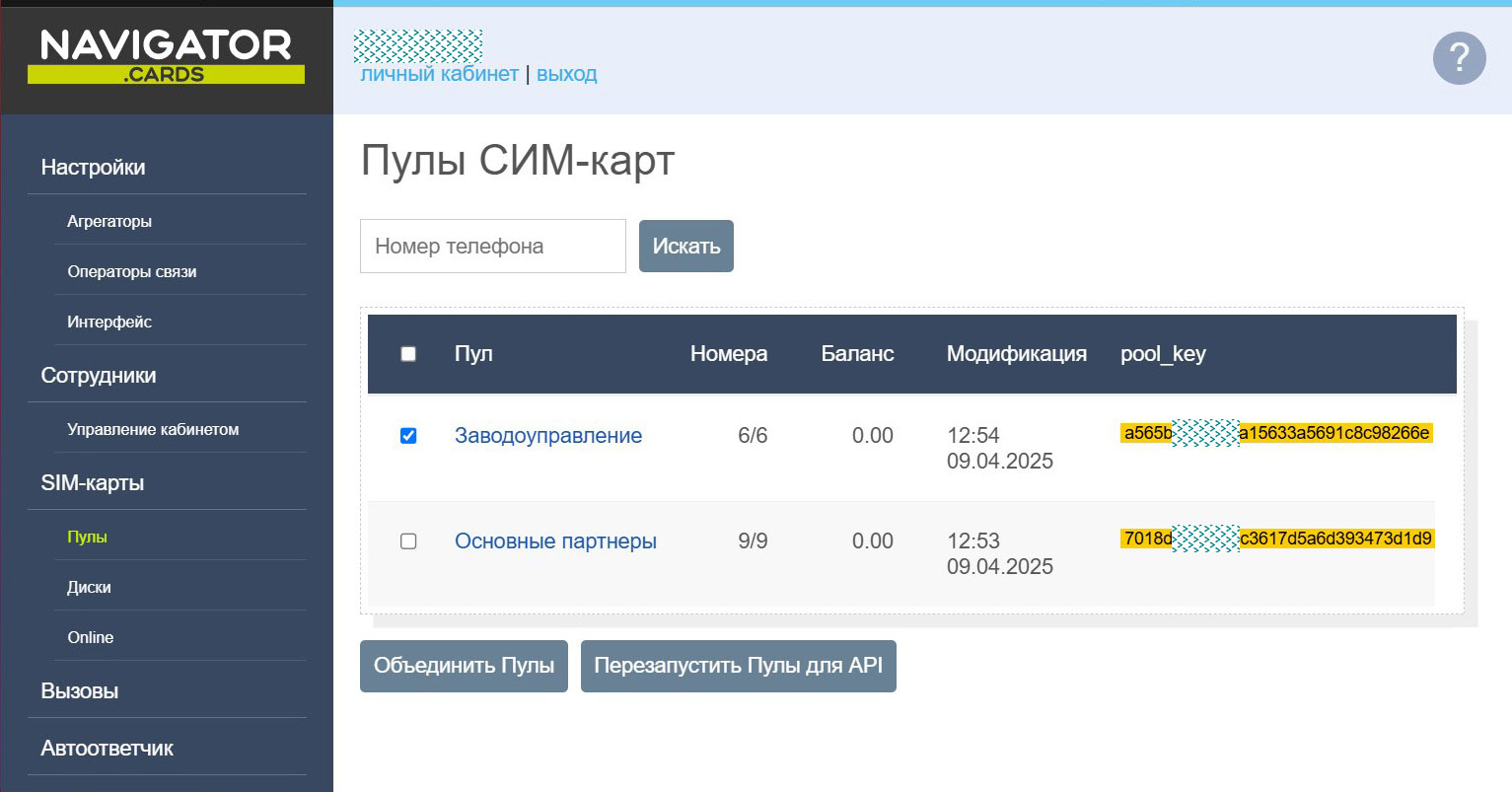 - Пулы могут включать SIM-карты, физически расположенных в разных агрегаторах.