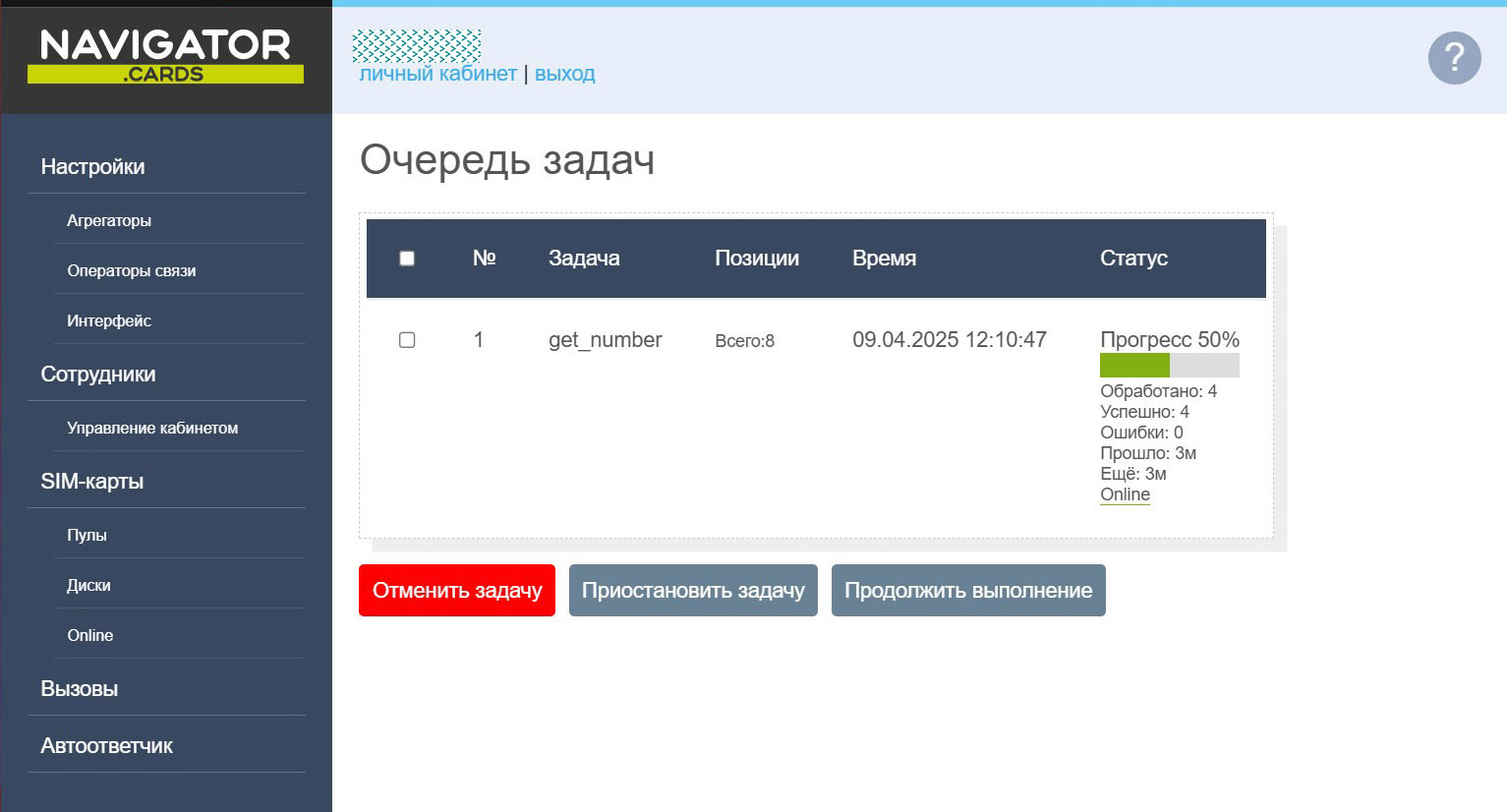 - Возможность формирования пулов телефонных номеров и назначения для них заданий.